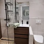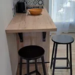 A fully-fitted kitchen with a microwave oven, a refrigerator, and kitchenware is available in the apartment, along with coffee and tea making equipment. The 21 m^2 apartment is a walk from Collines bus station.